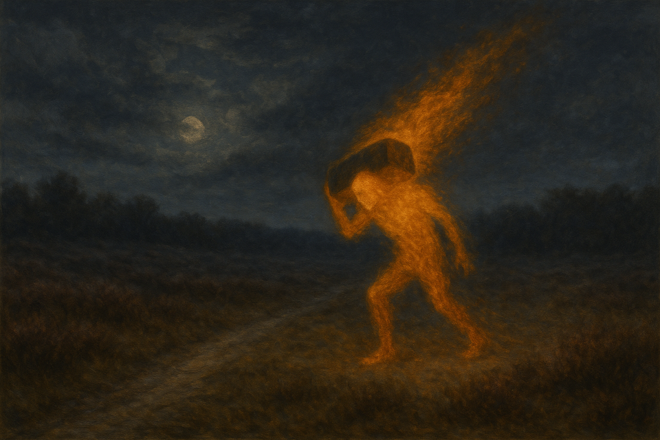 Ergens tussen Arcen en Velden dwaalde hij lange tijd rond: de Vuurman. Hij droeg 'n grote grenssteen met zich mee, weggenomen van z'n oude plek. Omdat hij de grenssteen zomaar meenam, rustte er een vloek op: de steen was gloeiend heet. 'Waar moet ik 'm leggen? Waar zal ik hem laten?' riep de Vuurman wanhopig. Pas als de steen precies op de juiste plek werd teruggelegd, kwam de Vuurman van de vloek af. Maar kruiste je onderweg z'n pad? Dan moest je op je hoede zijn... Tenminste, dat is de legende waarover in Noord-Limburg wordt gefluisterd. In het dorpshart van Arcen vind je nog 'vuurmannen' op palen met bewegwijzering. Wie goed kijkt, ziet dat ze een steen dragen. Inderdaad: de gloeiende vuursteen. Hoeveel tel jij er?