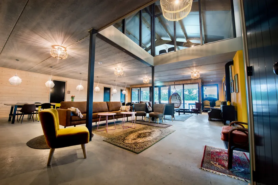 De Schaapshut is een sfeervolle groepsaccommodatie met vijftien karaktervolle slaapkamers, elk met een eigen badkamer. De woning is warm ingericht met een gezellige mix van vintage, retro en eigentijdse meubels en biedt volop ruimte om samen te koken, eten en ontspannen.
