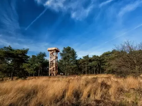 In de nazomer, als de heide paars kleurt, is het hier prachtig. Maar ook op een heldere dag in de winter is het uitzicht vanaf de toren vaak het scherpst. Eigenlijk kun je hier het hele jaar door terecht; in de zomer bieden de bomen lekker veel schaduw en in de herfst loop je tussen de mooiste kleuren.