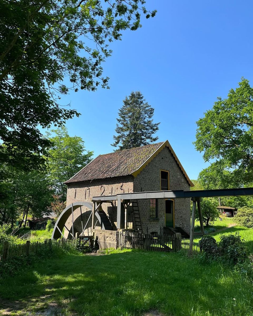 Ontdek: Je loopt het pad af en hoort het water al voordat je de molen ziet. De Bovenste Plasmolen ligt laag in het dal, met bomen eromheen en de heuvels van de Mookerheide op de achtergrond. De molen zelf valt op door de ligging aan het water en de oude bouw. Hier zie je hoe het landschap vroeger werd gebruikt. Paden kruisen elkaar rond de molen, waardoor het een logisch punt is om even stil te staan voordat je verder loopt. Vanaf hier kun je omhoog richting de heide of juist langs het water blijven.